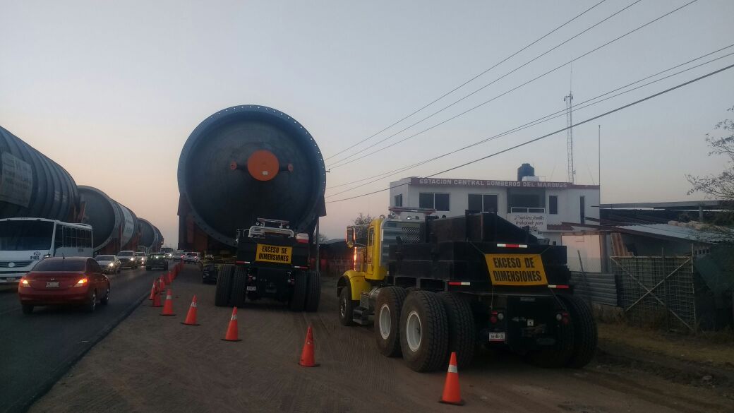Se requieren al menos dos noches más para que estas calderas puedan llegar a la carretera México-Querétaro y continuar su avance hacia la refineria de Tula.