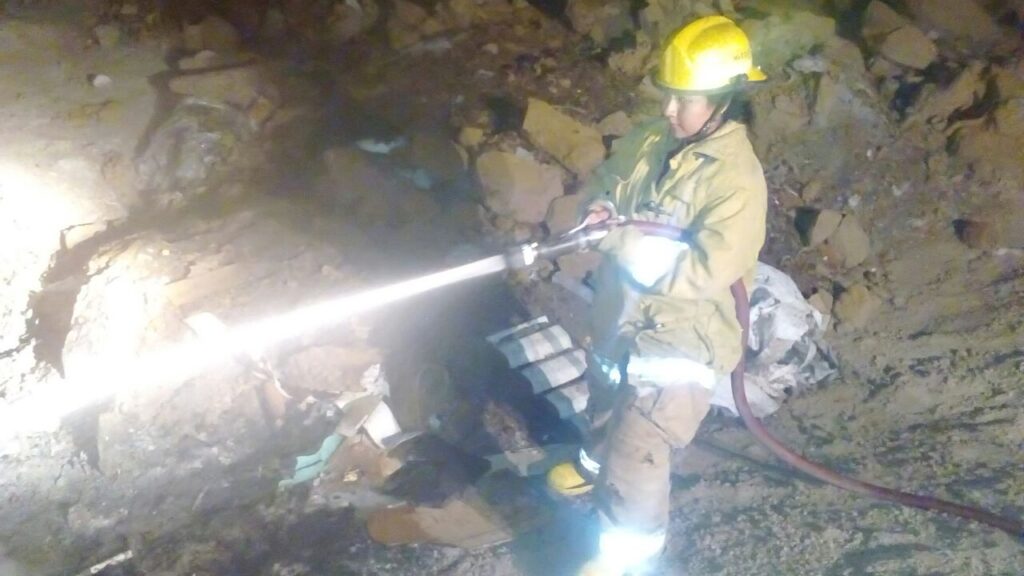 Querétaro, 9 de octubre.- Elementos del cuerpo de bomberos de El Marqués lograron contener un incendio al interior de una recicladora clandestina en la comunidad de dolores.