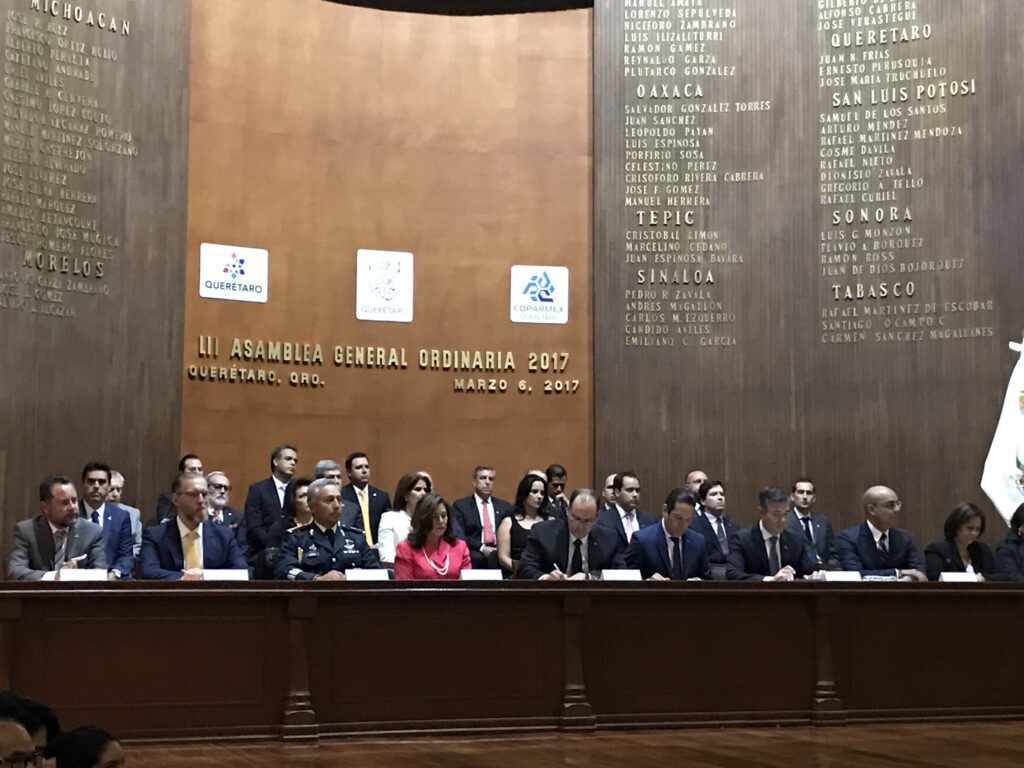 Querétaro, 6 de marzo.- La Confederación Patronal de la República Mexicana (Coparmex) Querétaro celebró su asamblea general ordinaria, en el teatro de la república, en un evento en el que estuvo presente el gobernador, Francisco Domínguez.