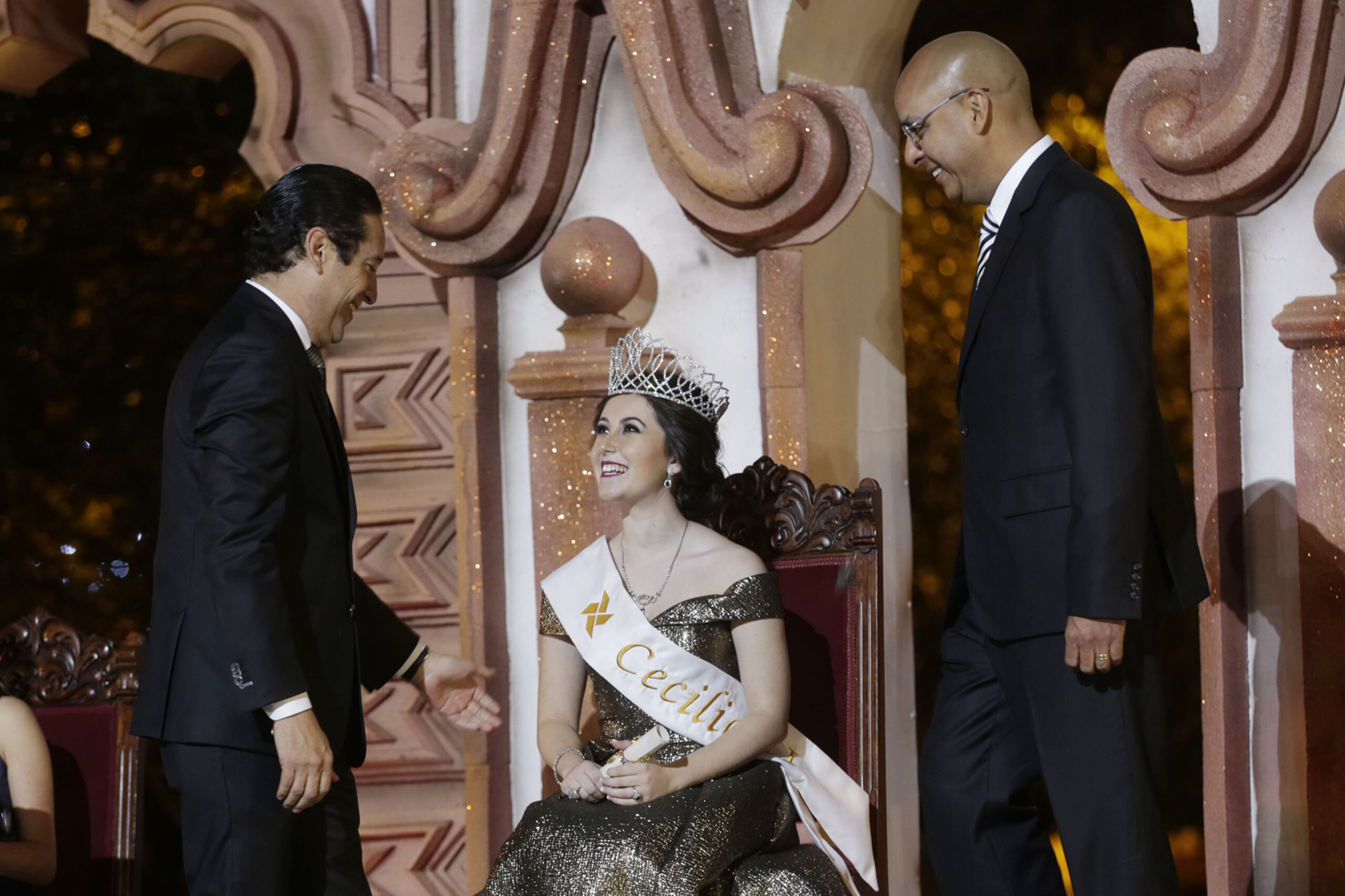 Querétaro, 3 de diciembre.- Autoridades encabezadas por el gobernador del estado, Francisco Domínguez Servién; la presidenta del DIF estatal, Karina Castro de Domínguez; el presidente municipal de Querétaro, Marcos Aguilar Vega; y la presidenta del DIF municipal, Teresa García de Aguilar coronaron a Cecilia II como reina de las Fiestas de Navidad 2016.