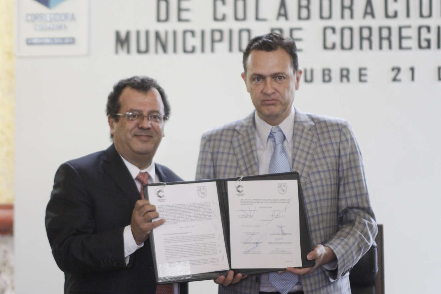 Querétaro, 22 de octubre.- Mauricio Kuri González, presidente municipal de Corregidora, acompañado por Gilberto Herrera Ruiz, rector de la Universidad Autónoma de Querétaro (UAQ), encabezó la firma del convenio de colaboración con la Máxima Casa de Estudios.