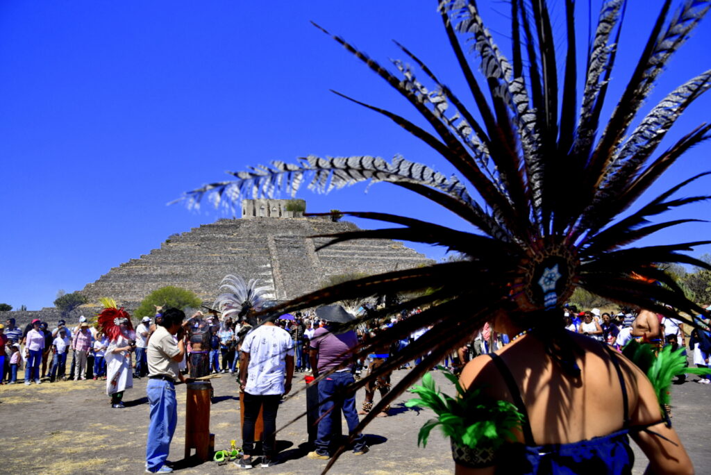 Con el tradicional sonar de los tambores prehispánicos, familias enteras acudieron para llevar a cabo el ritual prehispánico, en el que los guerreros mostraron su respeto por la tierra.