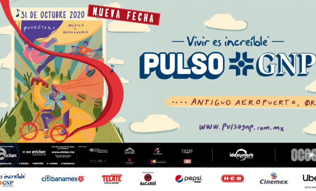 27 abril.- Ya se encuentra definida la fecha en la que se desarrollará el festival Pulso GNP, al pasar de mayo al 31 de octubre. Así, para su tercera edición en Querétaro ya se encuentra listo el cartel de artistas que estarán presentándose en el Antiguo Aeropuerto de Querétaro.