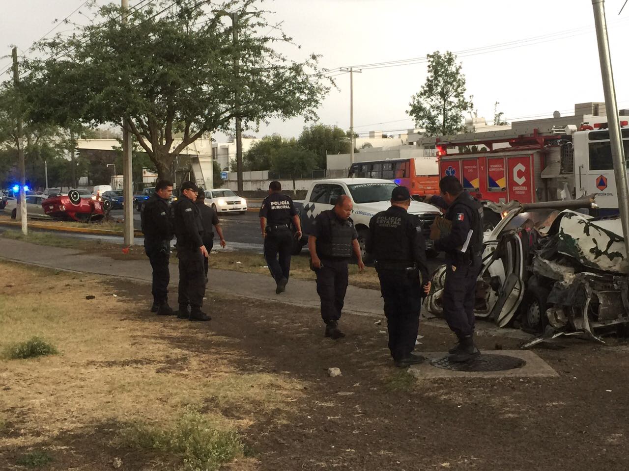 En un segundo percance, en dirección contraria, un auto terminó impactado contra un poste, dejando a sus tres tripulantes prensados, mientras que otro más volcó y fue impactado por un vehículo más.