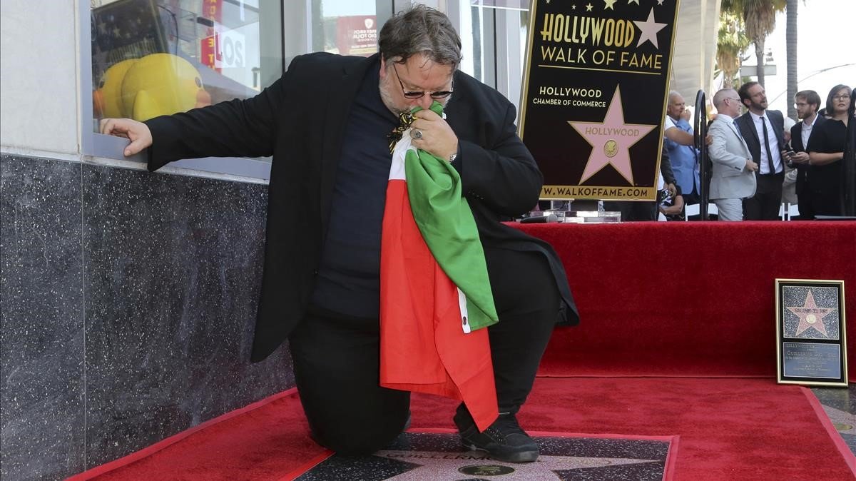 Excelsior, 7 de agosto.- Guillermo del Toro tomó la bandera de México en las manos, la besó, la abrazó y la extendió arrodillado frente a su estrella en el Paseo de la Fama de Hollywood, minutos después de develarla ayer en Los Ángeles, California.