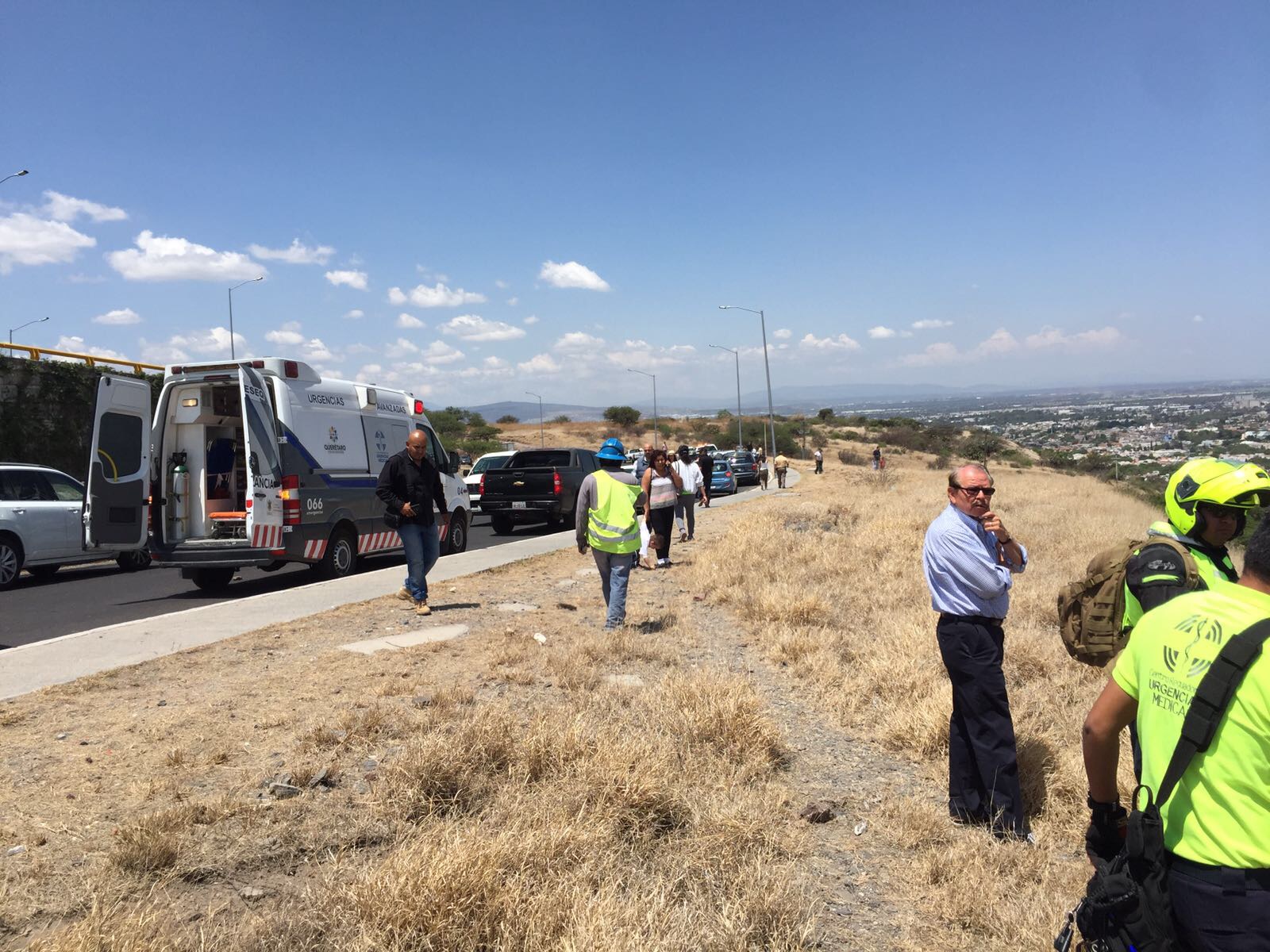 Querétaro, 2 de junio.- Un vehículo desbarrancó cuando circulaba sobre la avenida Paseo de la Reforma, en la bajada de la colonia Lomas del Marqués y El Campanario, de la Ciudad de Querétaro.
