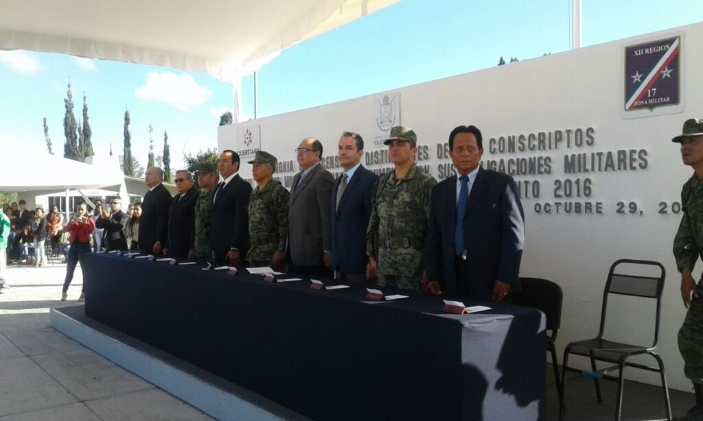 Querétaro 29 de octubre.- 48 De un total de 107 jóvenes que integran el tercer escalón de adiestramiento, fueron distinguidos y ascendidos gracias a su buena conducta y desempeño dentro de su Servicio Militar Nacional (SNM) en las instalaciones de la XVII Zona Militar.