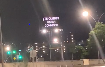 Querétaro, 24 de mayo.- Las propuestas de matrimonio son cada vez más espectaculares y son una muestra del ingenio de los caballeros para enaltecer ese momento que marcará sus vidas, un claro ejemplo es lo que se vió hoy por la noche en Querétaro.