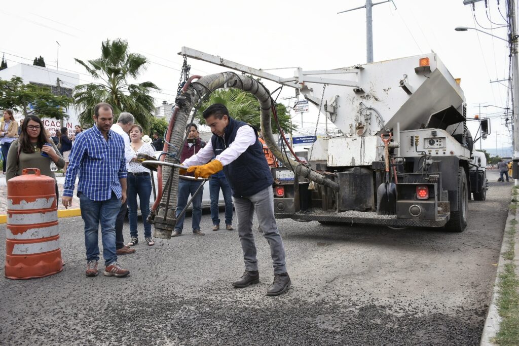 Querétaro, 12 octubre.- Roberto Sosa Pichardo, presidente municipal de Corregidora, encabezó el arranque y supervisión del programa emergente de bacheo, el cual dio inicio en Av. Chabacano, donde se acompañó por Moisés Moreno Melo, secretario de Movilidad, Desarrollo Urbano y Ecología.