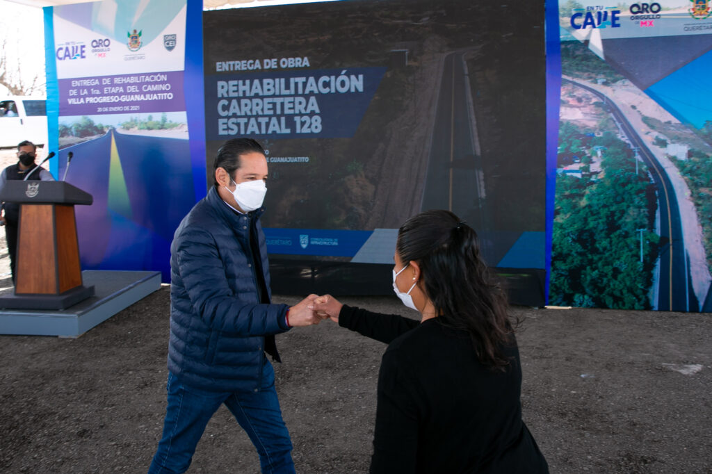 El gobernador Francisco Domínguez Servién, realizó la entrega de rehabilitación de 3.5 kilómetros del tramo de Villa Progreso a Guanajuatito, sobre la carretera estatal 128, en el municipio de Ezequiel Montes.