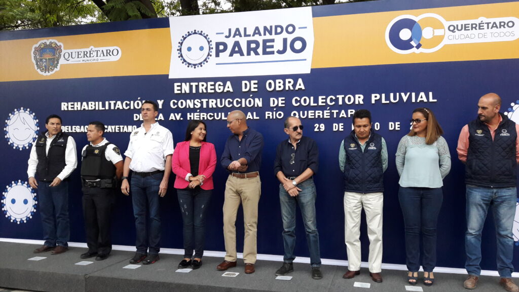 La primera fue un colector pluvial en la Colonia Hércules, además de la conexión con el río Querétaro, para evitar inundaciones justo enfrente del seminario conciliar, la segunda obra entregada fue un colector pluvial en la Avenida Manufactura 4 y la tercera un escurrimiento pluvial en la calle Heriberto Jara de la colonia Reforma Agraria.