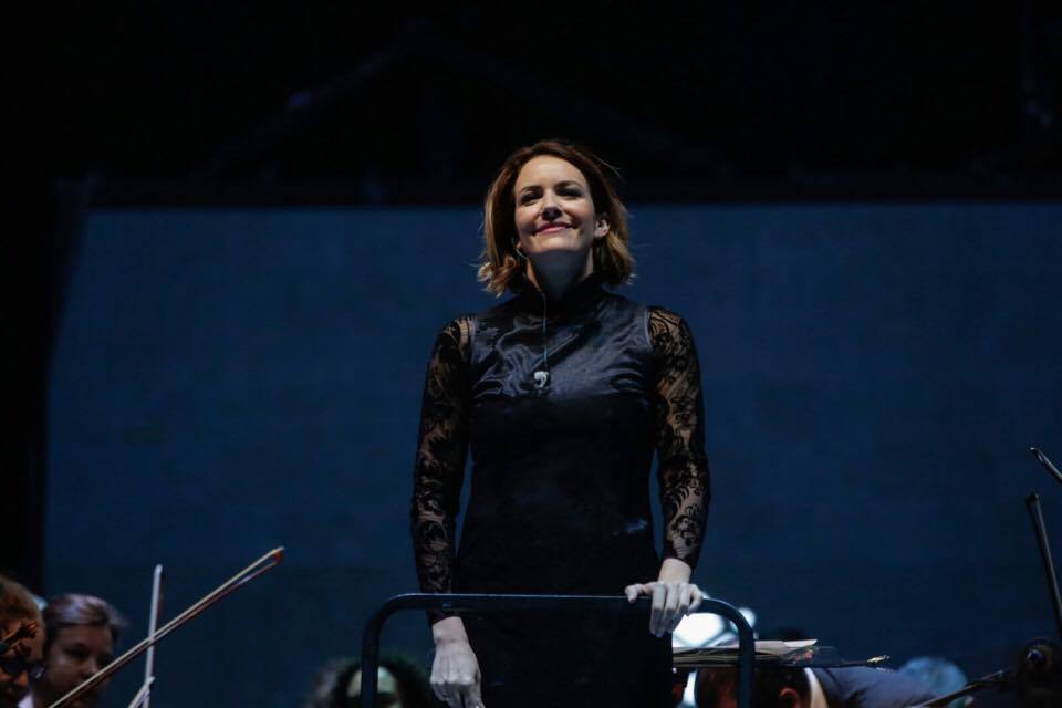 Querétaro, 13 de mayo.- El Estadio Corregidora fue el recinto que congregó a 38 mil personas, que tuvieron la oportunidad de deleitarse con la presentación de Alondra de la Parra, quien dirigió a la Orquesta Filarmónica de Querétaro, contando con las voces en escena de Natalia Laforucade, Denise Gutiérrez y Leonel García, quienes interpretaron un repertorio que constó de música sinfónica, boleros y composiciones que forman parte del acervo musical de nuestro país.