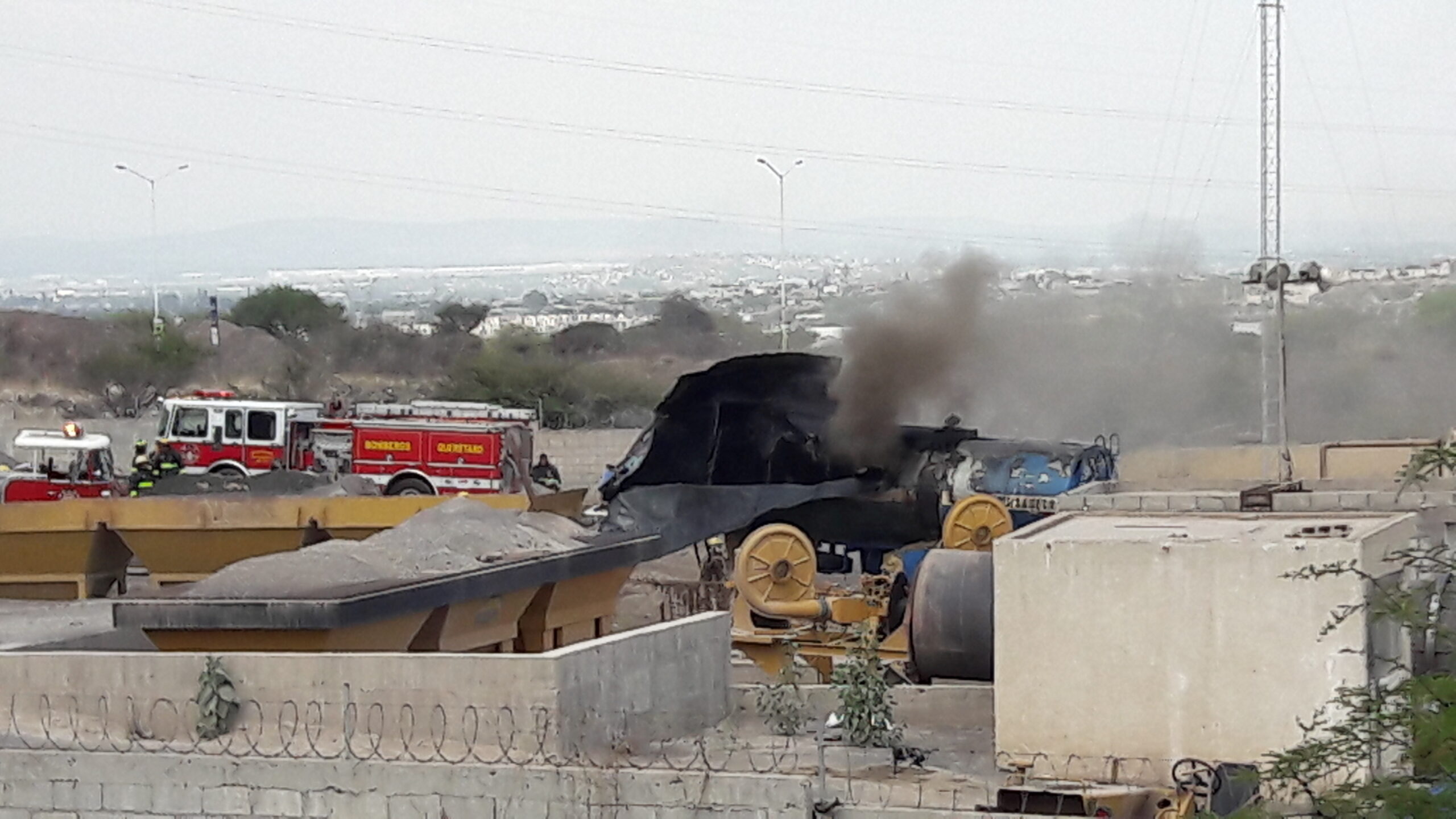 Querétaro, 26 de mayo.- Elementos del cuerpo de bomberos se trasladaron a una empresa de asfalto localizada en el microparque industrial La Noria, perteneciente al municipio de El marqués, después de que se reportara a la línea de emergencia 911 una explosión de un tanque de asfalto.