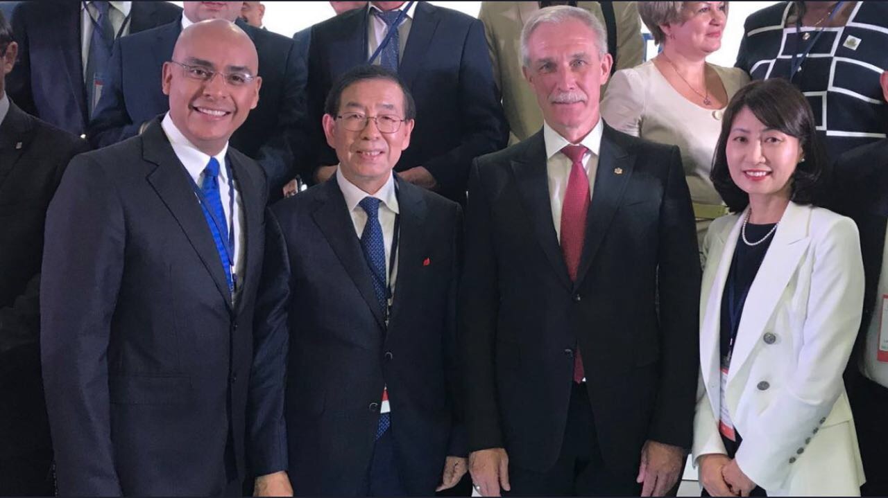 El edil capitalino también sostuvo una reunión con el alcalde de Seúl, Corea del Sur, quien lo invitó a participar en el foro, y con el que se intercambiaron estrategias en materia de planeación.