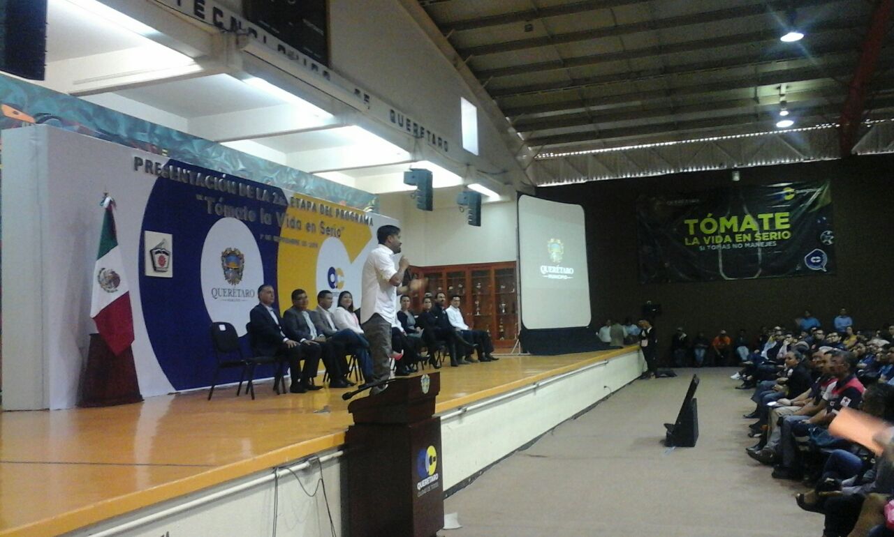 Querétaro, 1 de Septiembre.- Ante más de 600 estudiantes del Instituto Tecnológico de Querétaro las autoridades municipales presentaron la segunda etapa del Programa Tómate la Vida en Serio.