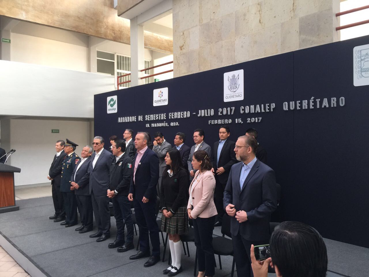 Querétaro, 15 de febrero.- El gobernador, Francisco Domínguez Servién, encabezó el arranque de semestre febrero-julio 2017, del Plantel Conalep Aeronáutico, en el municipio de El Marqués.