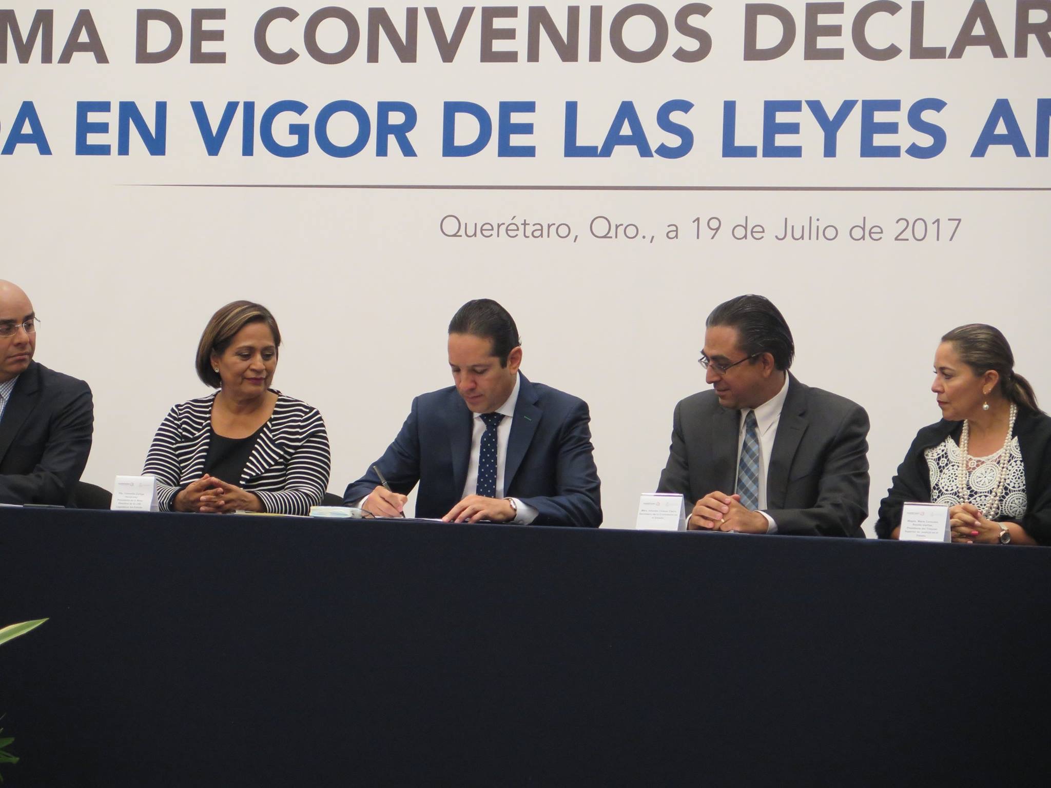 Querétaro, 19 de julio.- El gobierno de Querétaro firmó el convenio de colaboración con el sistema Declaranet Plus, con el que se busca transparentar el uso de recursos públicos y privados de 60 mil servidores públicos en el estado.