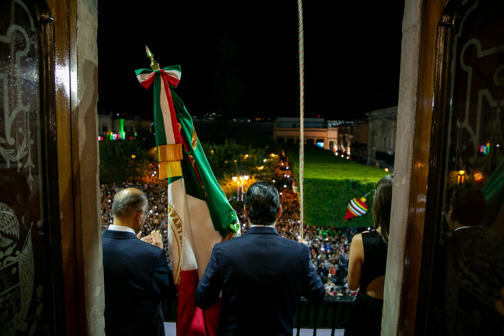 Para finalizar, Domínguez Servién acudirá de nuevo al palco central de Palacio de Gobierno para atestiguar el espectáculo de pirotecnia a través de pantallas.