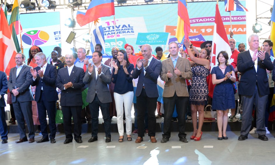 Querétaro, 16 de marzo.- El presidente municipal de Querétaro, Marcos Aguilar Vega, inauguró la 11a edición del Festival de Comunidades Extranjeras, donde participan 75 países de 4 continentes.
