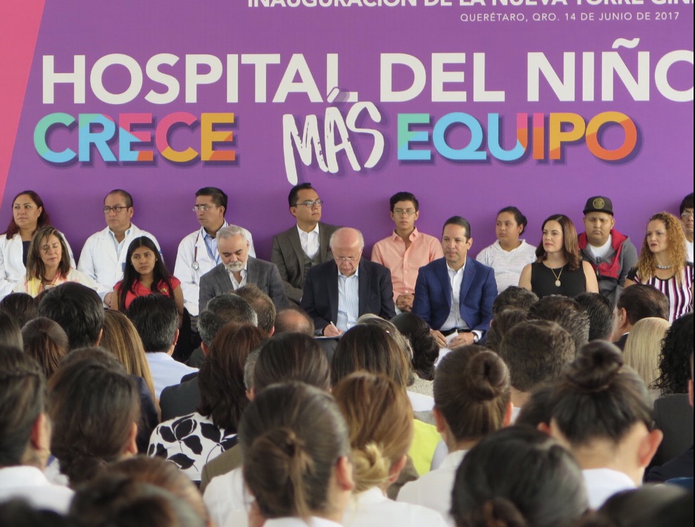 Querétaro, 14 de junio.- Autoridades estatales y federales inauguraron la nueva torre de Gineco-Obstetricia, en el Hospital Especialidades del Niño y la Mujer.