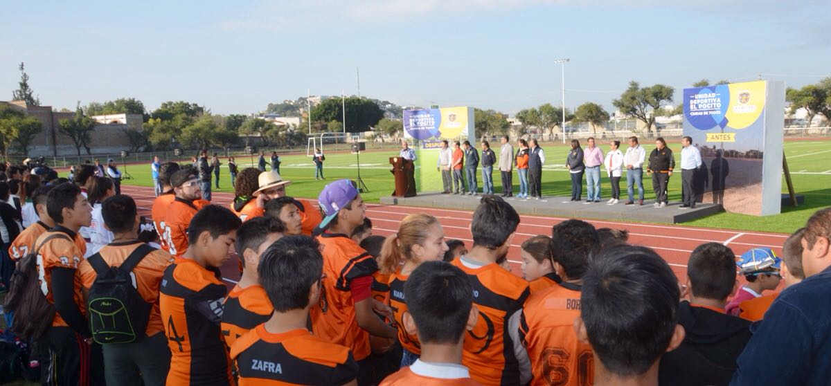 Querétaro, 1 de Octubre.- Con una inversión de 34 millones de pesos, fue inaugurada por autoridades municipales y directivos del Instituto Tecnológico de Querétaro (ITQ) la Unidad Deportiva El Pocito.