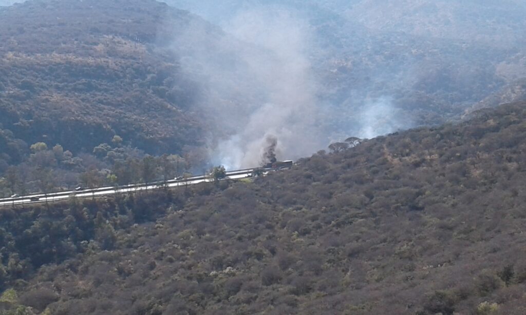 Tepeji del Río, 24 de diciembre.- Durante más de 3 horas la autopista México-Querétaro en su tramo Jilotepec-Tepeji del Río, permaneció cerrada por un incidente en el que un tráiler resultó consumido en su totalidad por el fuego.