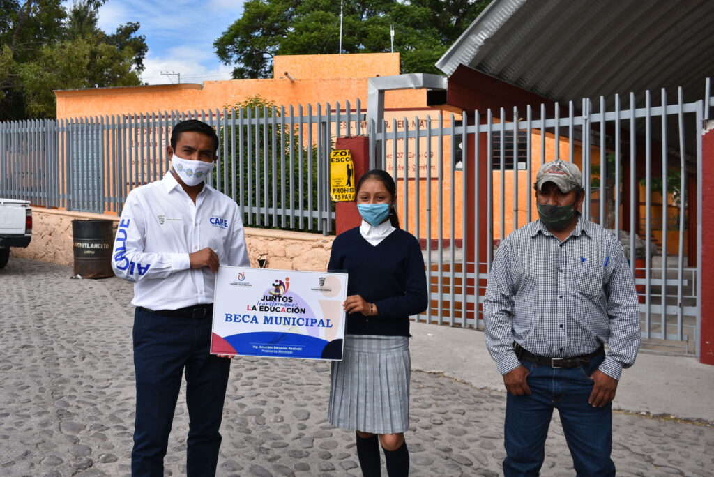 “Este apoyo que hoy reciben, es un estímulo ganado gracias a su excelente aprovechamiento escolar tras obtener los mejores promedios en la demarcación. Con ello, se fortalece la educación, que es la base para forjar el futuro de los escobedenses”, puntualizó el Edil de Pedro Escobedo, durante la gira de entrega, de manera personal, a los beneficiarios de las Becas Municipales “Juntos Transformemos la Educación”, en las comunidades de Ajuchitlancito, Dolores de Ajuchitlancito, Escolásticas, La Ceja y La Purísima.