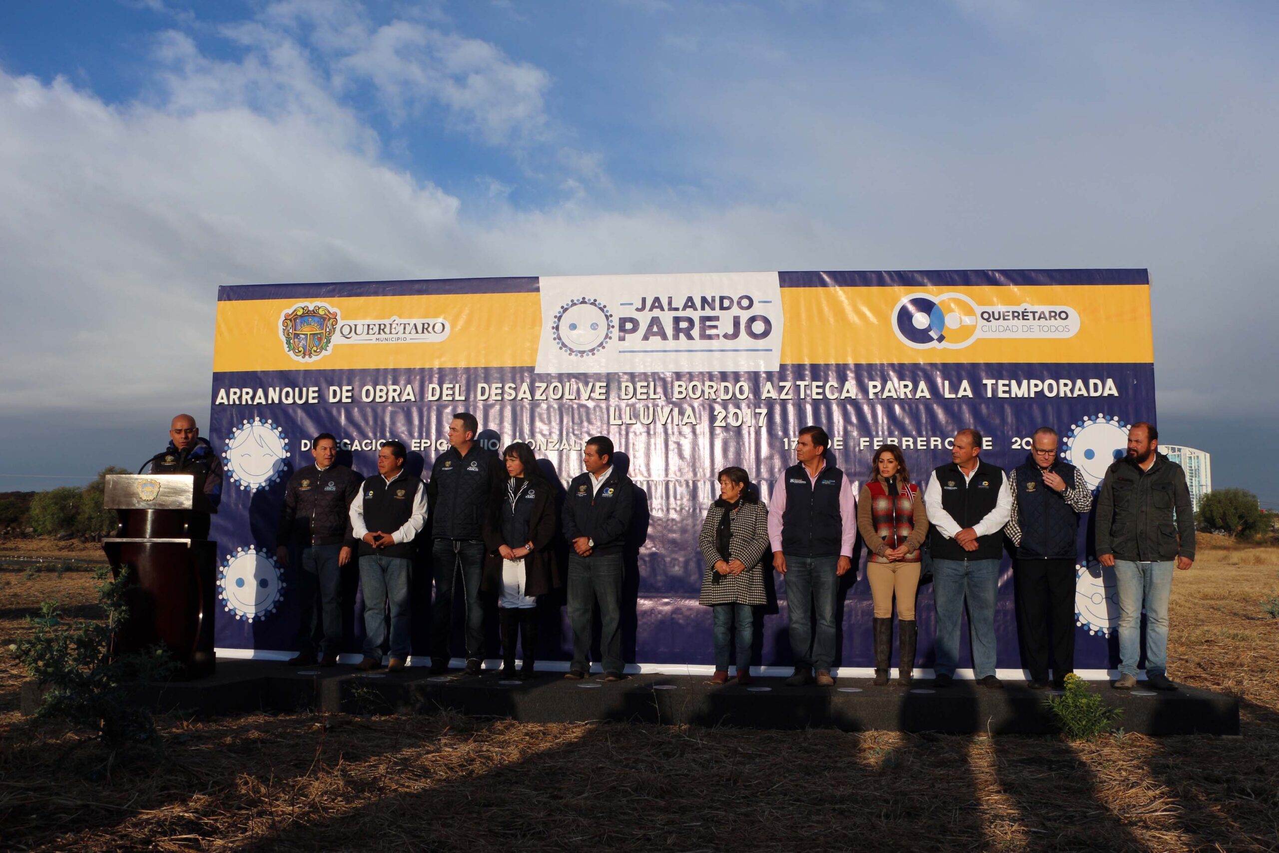 Querétaro, 17 de febrero.- Con una inversión directa de cinco millones de pesos, el gobierno municipal de Querétaro Inició con los trabajos de limpieza y desazolve del Bordo Azteca en la delegación Epigmenio González.