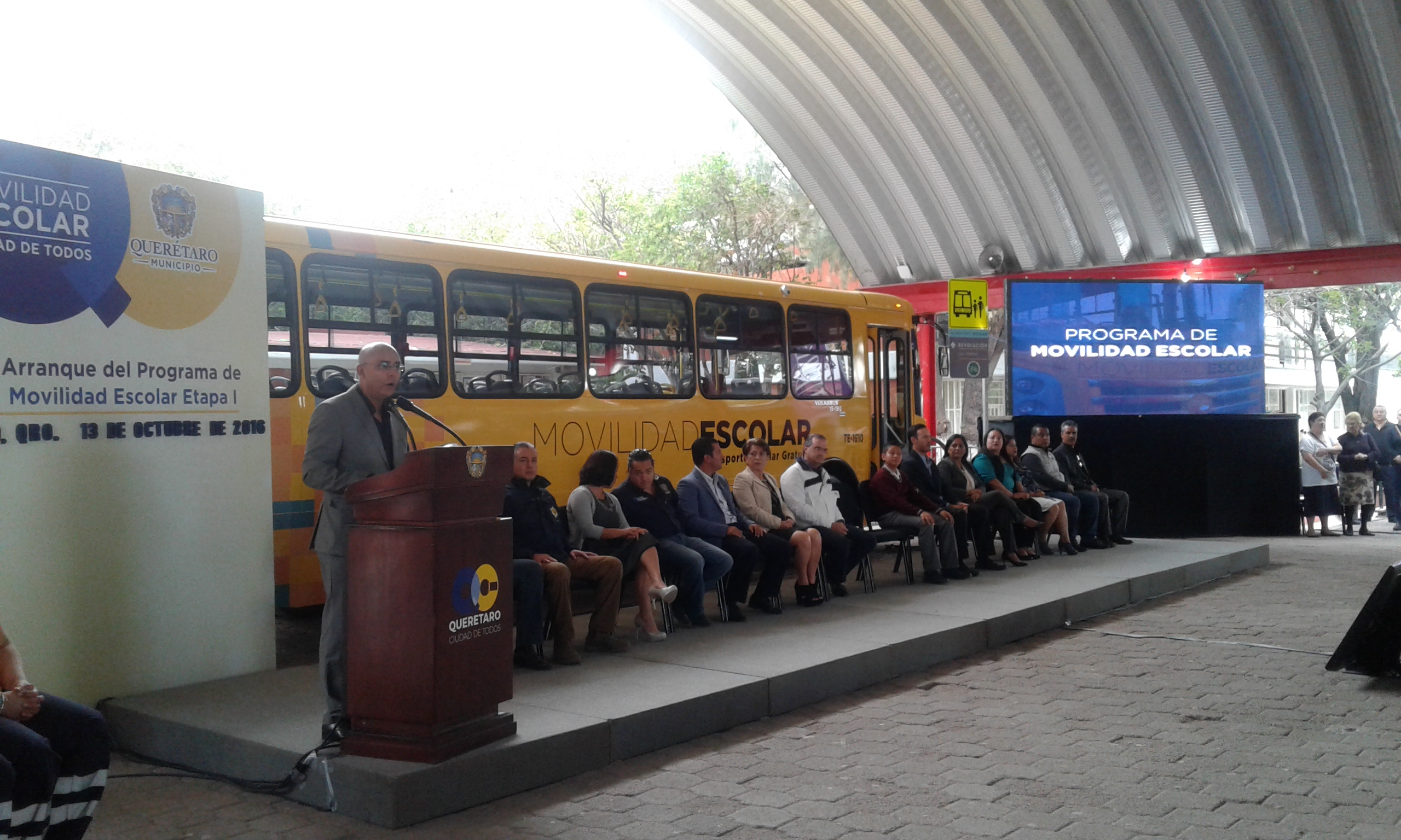 Querétaro, 13 de Octubre.- El Municipio de Querétaro echó a andar el programa piloto Transporte Escolar Gratuito en la escuela Primaria Julián Adame Alatorre, de la colonia Satélite.