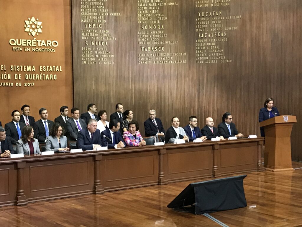 “Hoy, con la instalación del Sistema Estatal Anticorrupción, Querétaro es nuevamente un referente nacional al poner en funcionamiento en tiempo y en forma el sistema”, precisó Carmelita Zúñiga Hernández, presidenta de la mesa directiva en la legislatura local.