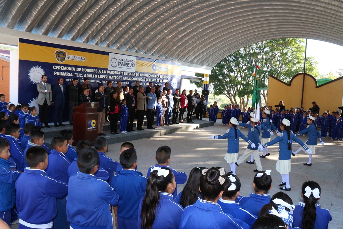 Querétaro 10 de Octubre.- Durante la entrega del arcotecho en la comunidad de Cerro de la Cruz, en Santa Rosa Jáuregui, el alcalde Marcos Aguilar instó a los padres de familia a poner de su parte en la educación de sus hijos para atacar el problema de la inseguridad en la zona.