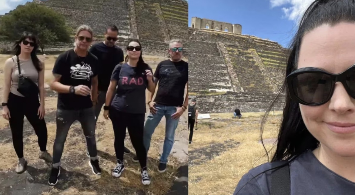 Hace unos días, se pudo captar a los integrantes de la banda Evanescence y a su vocalista Amy Lee, paseándose por la zona arqueológica de El Cerrito en el municipio de Corregidora, Querétaro, previo a su presentación en el Festival GNP 2023.