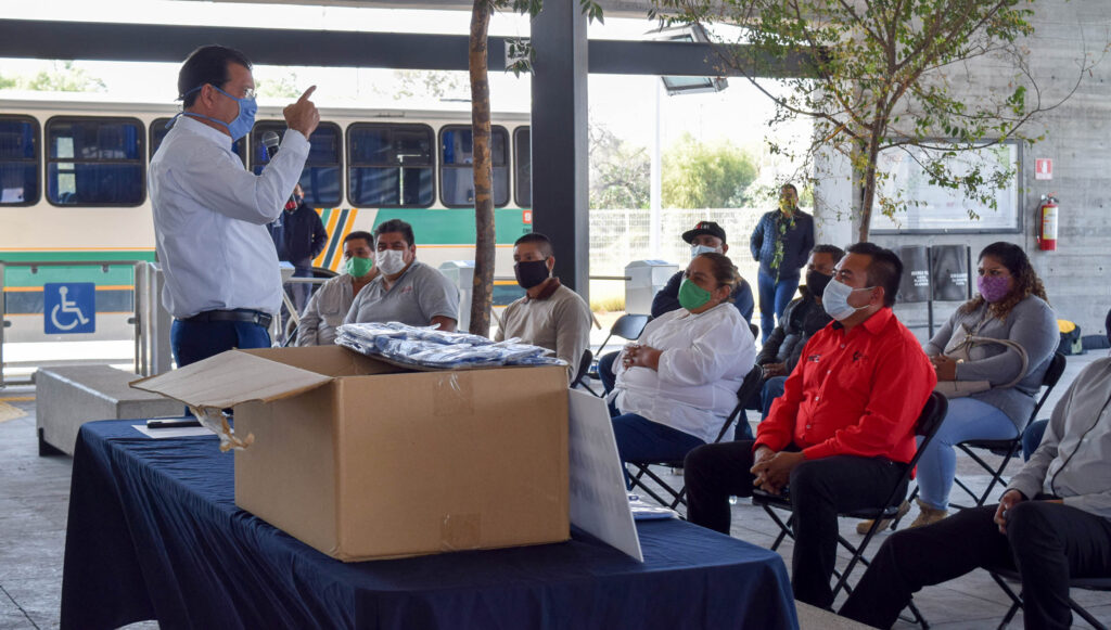 Con el objetivo de proteger a los operadores y al mismo tiempo reducir los niveles de contaminación y los costos generados por estos insumos de protección, el Instituto Queretano del Transporte (IQT) entregó cubreboca reutilizables para los operadores del Transporte Público Suburbano, pues “la principal protección que se ha encontrado en el mundo (para la prevención de la COVID-19) previo a la aplicación de la vacuna es el uso del cubreboca”, aseguró el director del Instituto Queretano del Transporte, Alejandro López Franco.