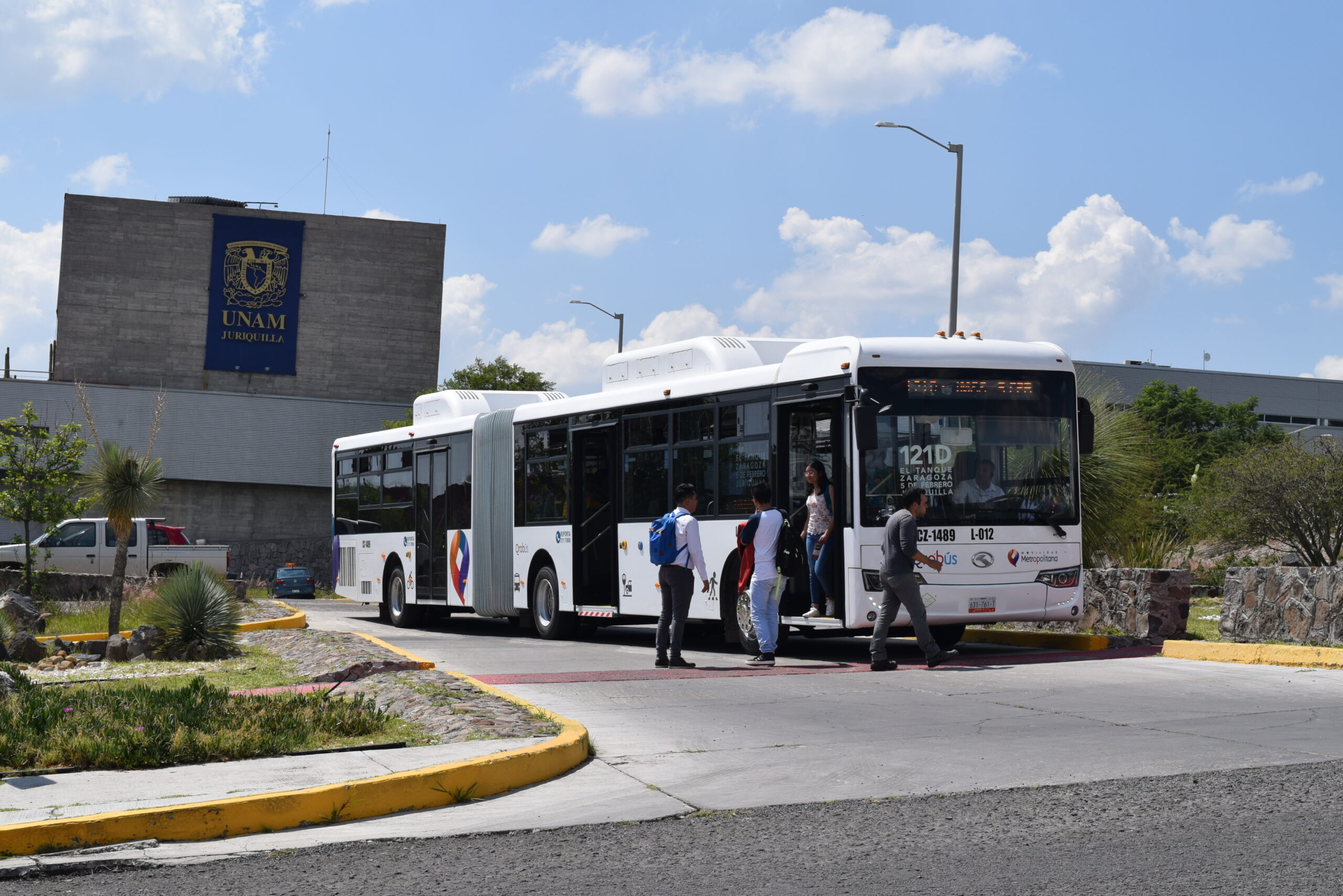 Querétaro, 25 de septiembre.- Con el propósito de generar una alternativa más de movilidad en el surponiente de la ciudad, el Instituto Queretano del Transporte (IQT) y la empresa concesionaria MóvilQro Bús pusieron en marcha oficialmente la ruta 121-D, que beneficiará a casi 14 mil usuarios, pertenecientes a la comunidad estudiantil del campus Juriquilla de la UNAM, de la Universidad Autónoma de Querétaro (UAQ), así como de la Universidad del Valle de México (UVM).