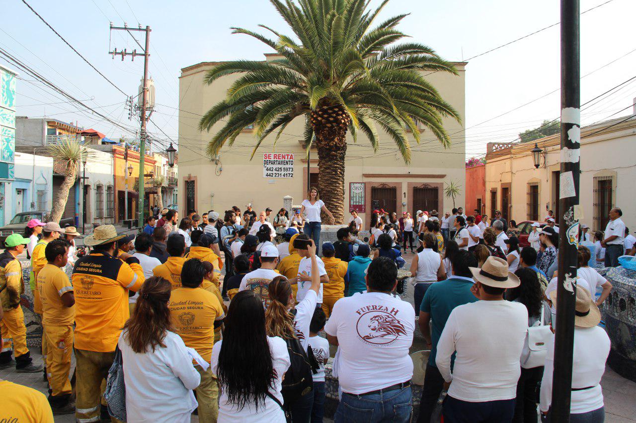 Querétaro, 6 mayo.- Ciudadanos organizados, voluntarios y vecinos del Centro Histórico, con el apoyo de personal de la Secretaría de Servicios Públicos y de Obras Públicas del Municipio de Querétaro, se reunieron esta mañana en el Jardín de los Platitos para apoyar en los trabajos de limpieza y saneamiento del Río Querétaro, en su tramo de avenida Juárez y hasta la avenida 5 de Febrero.