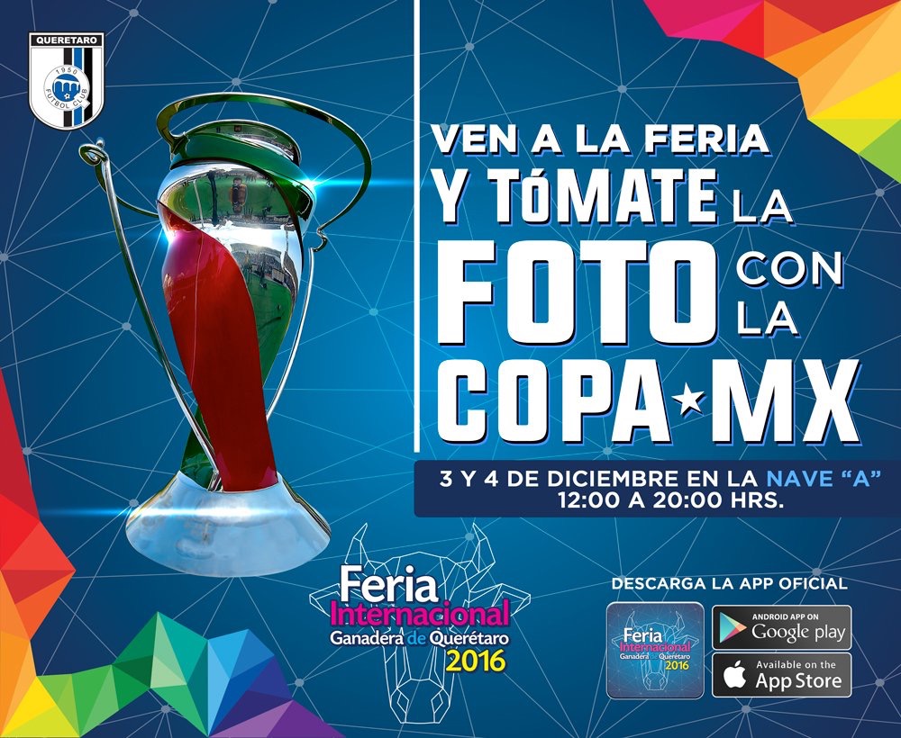 Este sábado 3 y domingo 4 de diciembre, miembros de la Directiva del equipo de futbol “Gallos Blancos” expondrán la Copa MX del Apertura 2016 en la Nave A del Ecocentro Expositor de 11:00 a 20:00 horas, para que toda la afición pueda tomarse la foto y disfrutar de este trofeo de los queretanos.