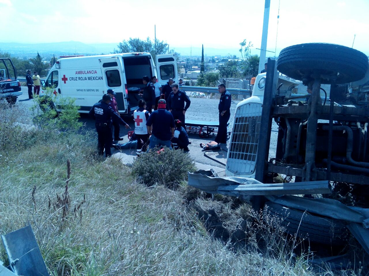 Los hechos se presentaron en la curva de incorporación al anillo Vial Fray Junípero Serra al descender de la carretera a Chichimequillas, el operador del camión de carga no alcanzó a reducir la velocidad cuando tomó la curva cerrada y salió del camino.