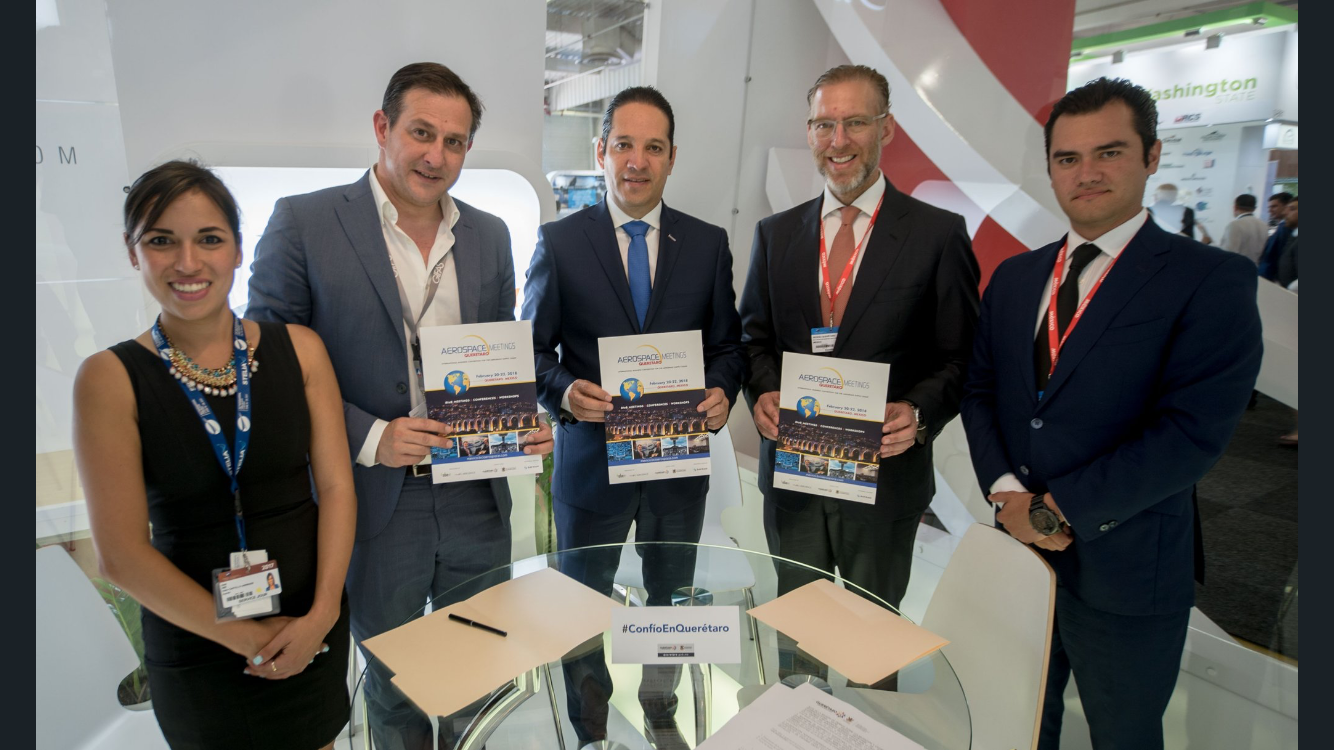 Querétaro, 22 de junio.- Autoridades estatales que se encuentran de gira por Europa, anunciaron la llegada del “Aerospace Meetings” a Querétaro, donde se realizará del 20 al 22 de febrero de 2018.