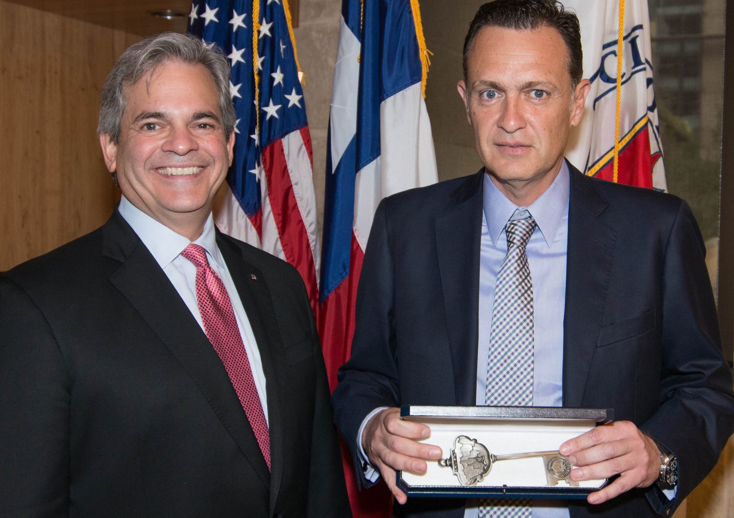 Querétaro, 10 de marzo.- Mauricio Kuri González, presidente municipal de Corregidora, recibió las llaves de la ciudad de Austin, Texas, luego de ser convocado para recibir dicha distinción por el alcalde de aquella localidad, Steve Adler.