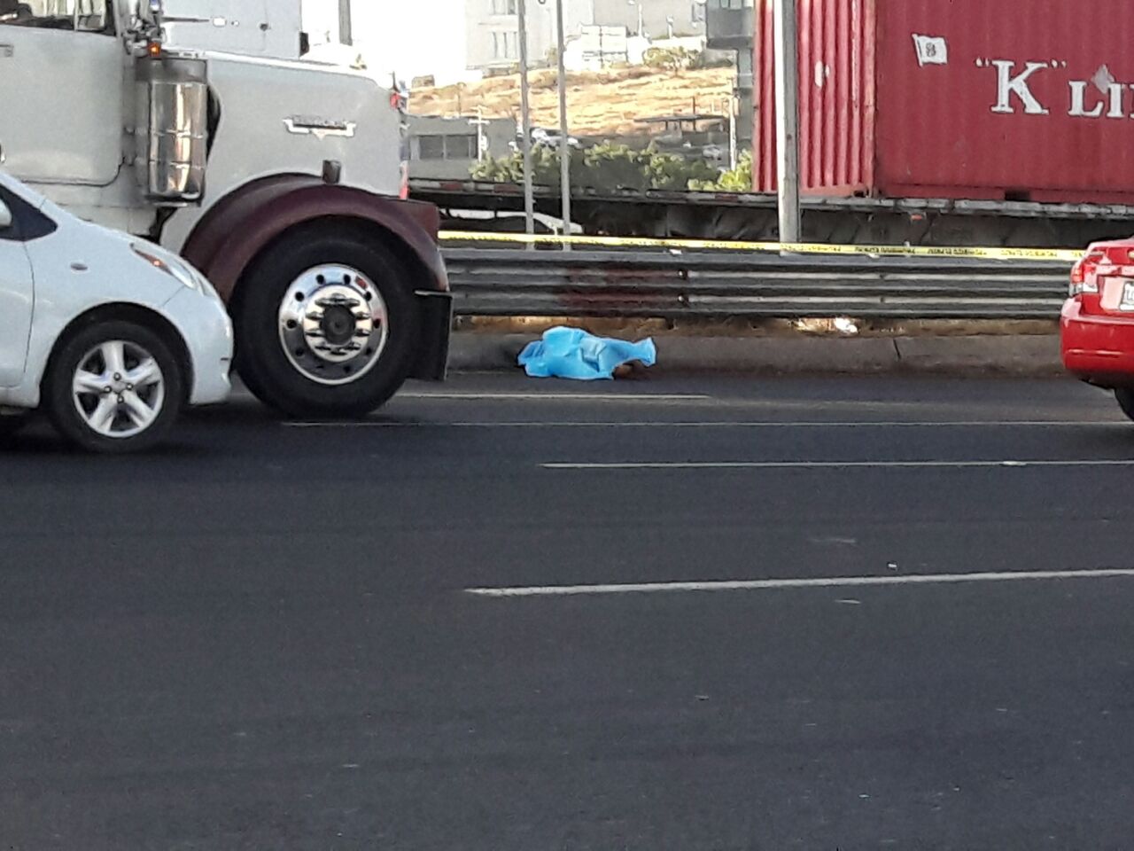 Este accidente se registró cuando el hombre intentó atravesar los carriles centrales de la carretera sobre el puente que pasa sobre boulevar Bernardo Quintana, al parecer fue golpeado por un camión de carga que se dio a la fuga.