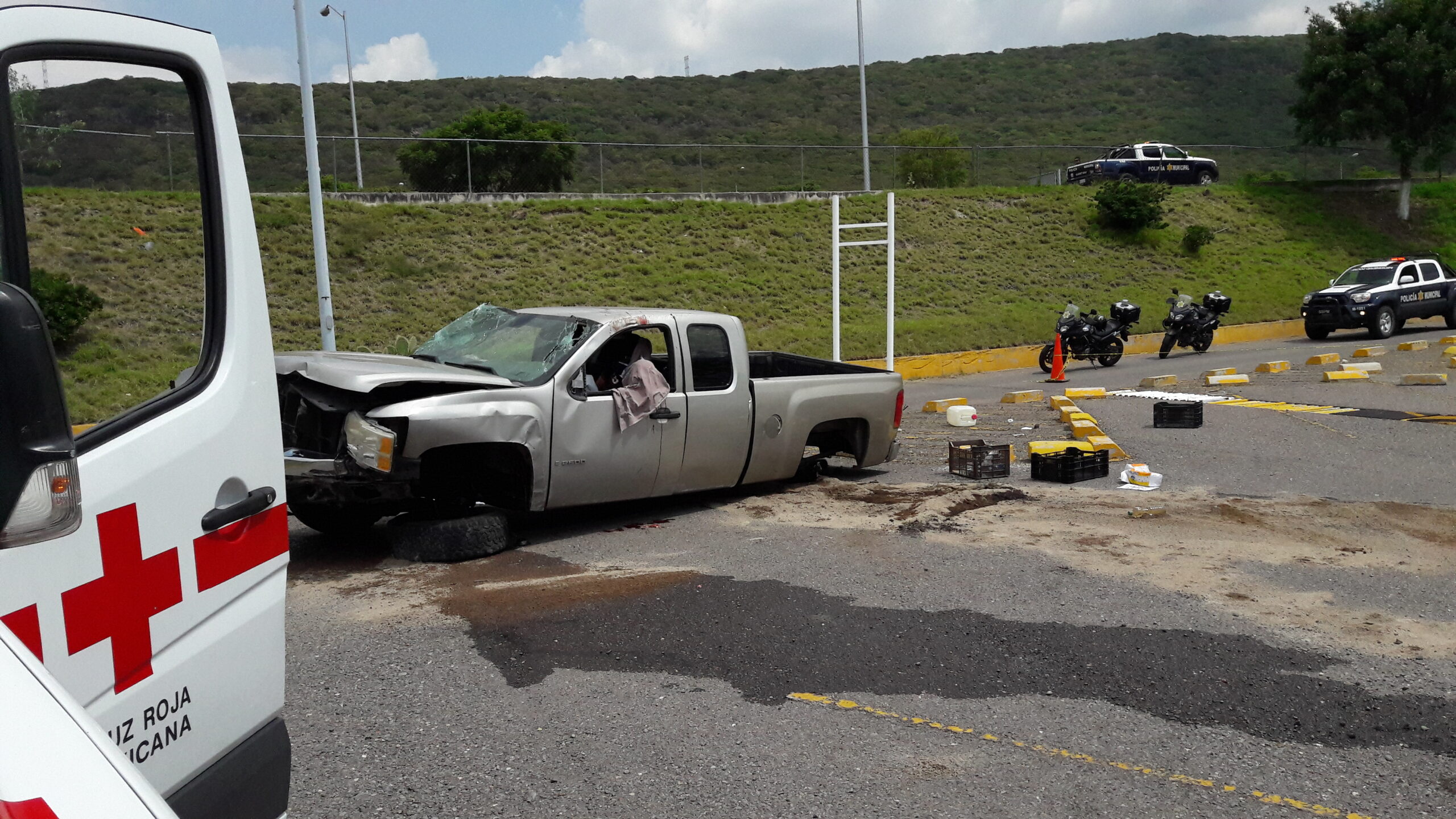 Al no llevar puesto el cinturón de seguridad del conductor de tan sólo 28 años de edad golpeó al parecer en contra del toldo de la camioneta lo que ocasionó exposición de masa encefálica.