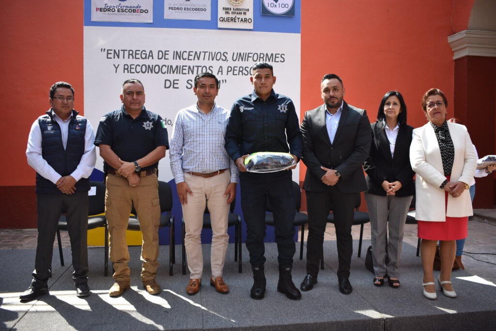 Durante el evento se entregaron uniformes para auxiliares viales y uniformes para la unidad K9; además se dieron reconocimientos al personal policial por Evaluación de Desempeño, así como a quienes se capacitaron en Aspectos Generales de Derechos Humanos y se dio entrega de los incentivos económicos para el personal policial destacado en el programa Defendamos Querétaro.