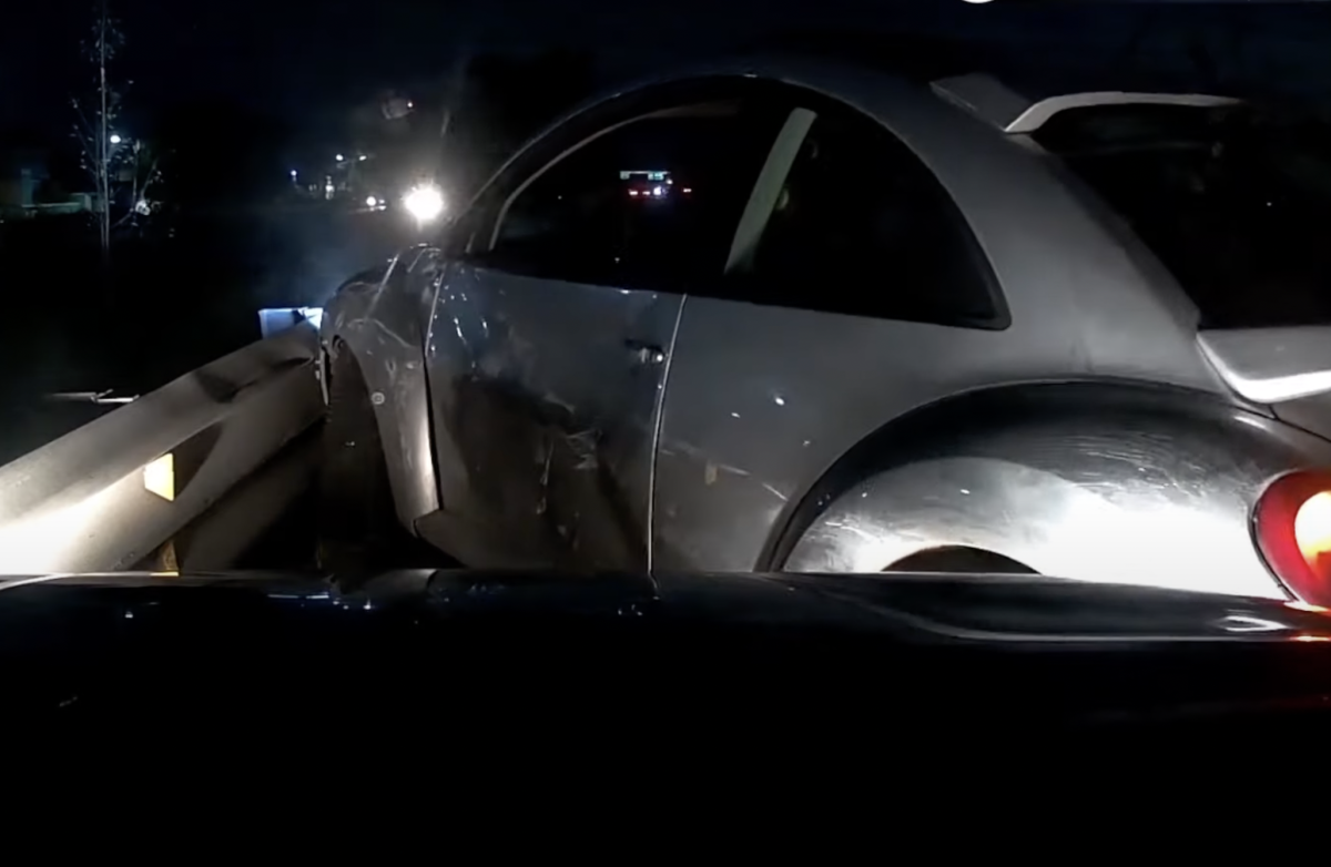 El relato también da parte de que el choque del Beetle a los custodios fue en el carril de alta velocidad, cerca del supuesto operativo de la GN que no intervino; 20 minutos después llega una patrulla de la GN, se bajan a ver el choque, pero en vez de abanderar, los agentes se van.