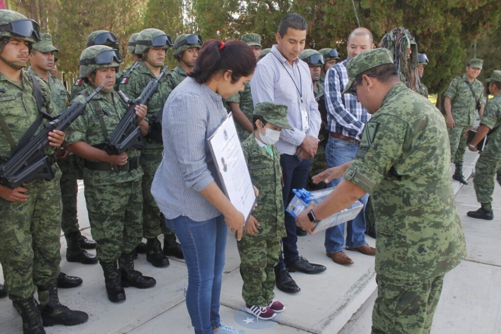 perteneciente a referido regimiento, reconoció el esfuerzo del menor de edad quien recibe tratamiento en el Hospital Infantil Teletón de Oncología (H.I.T.O.) de esta ciudad, siendo un ejemplo de lucha, valor y fuerza para los integrantes del Ejército y Fuerza Aérea Mexicanos.