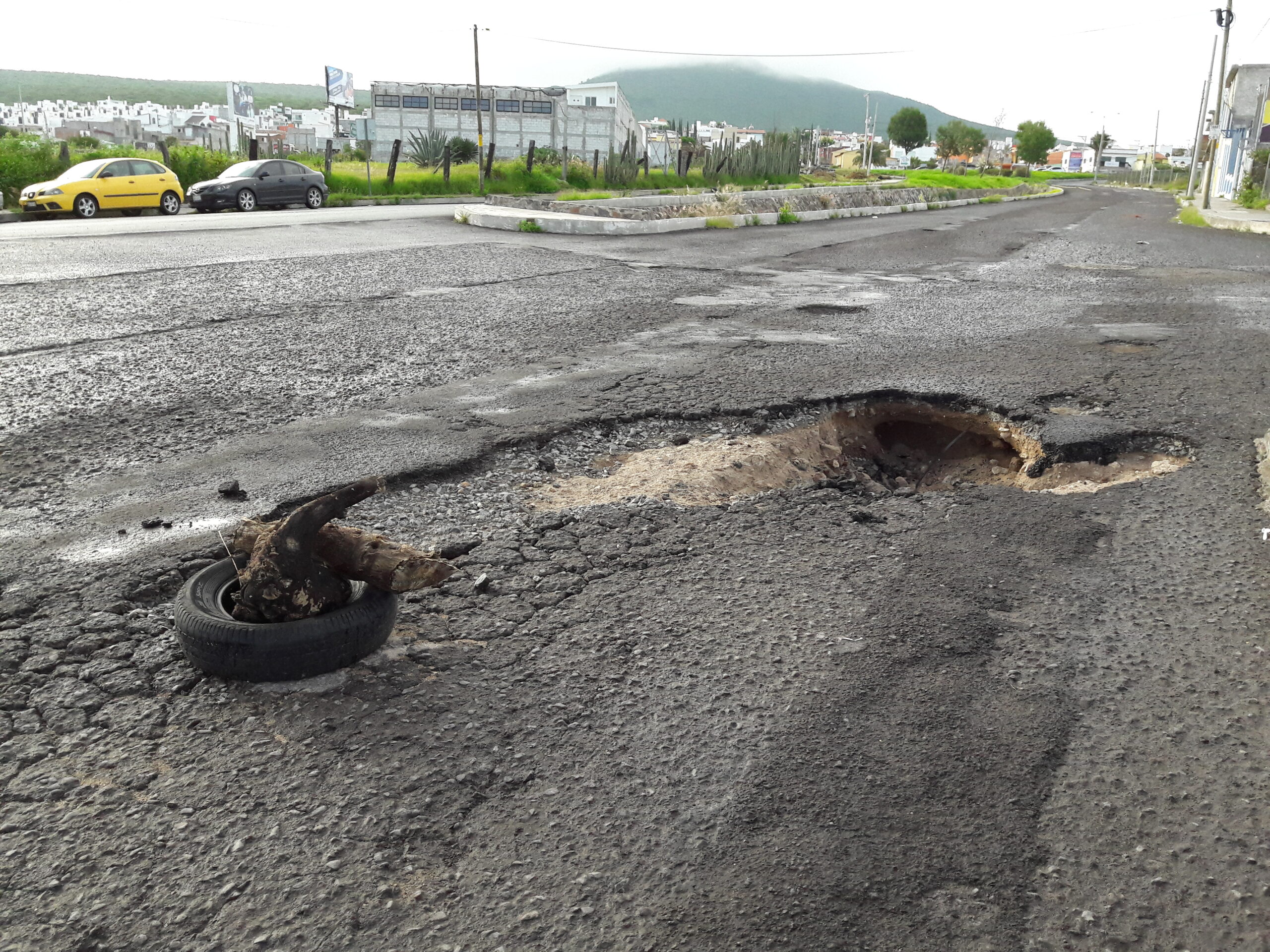 Querétaro, 1 de Septiembre.- Vecinos de la colonia Linderos del Cimatario han sufrido daños en sus vehículos por los grandes baches que se han abierto en el pavimento de avenida Luis Pasteur Sur, hoyos de hasta 50 centímetros de profundidad.