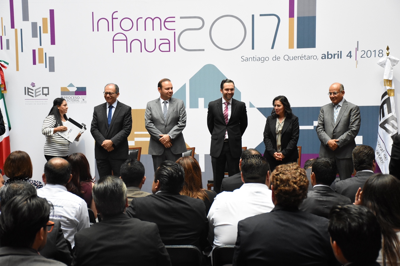 Querétaro, 4 de abril.- El Consejero Presidente del Instituto Electoral del Estado de Querétaro (IEEQ), Gerardo Romero Altamirano, presentó a la ciudadanía el informe anual de las actividades del organismo en 2017.