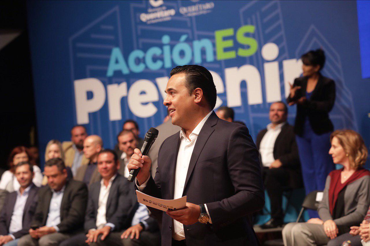 Querétaro, 27 de marzo.- El Presidente Municipal de Querétaro, Luis Nava, presentó el Programa Integral “AccionES Prevenir”, a través del cual todas las dependencias municipales, de la mano de la sociedad, trabajarán para favorecer condiciones para la prevención de la violencia y la delincuencia en colonias y comunidades y procurar una ciudad de paz.