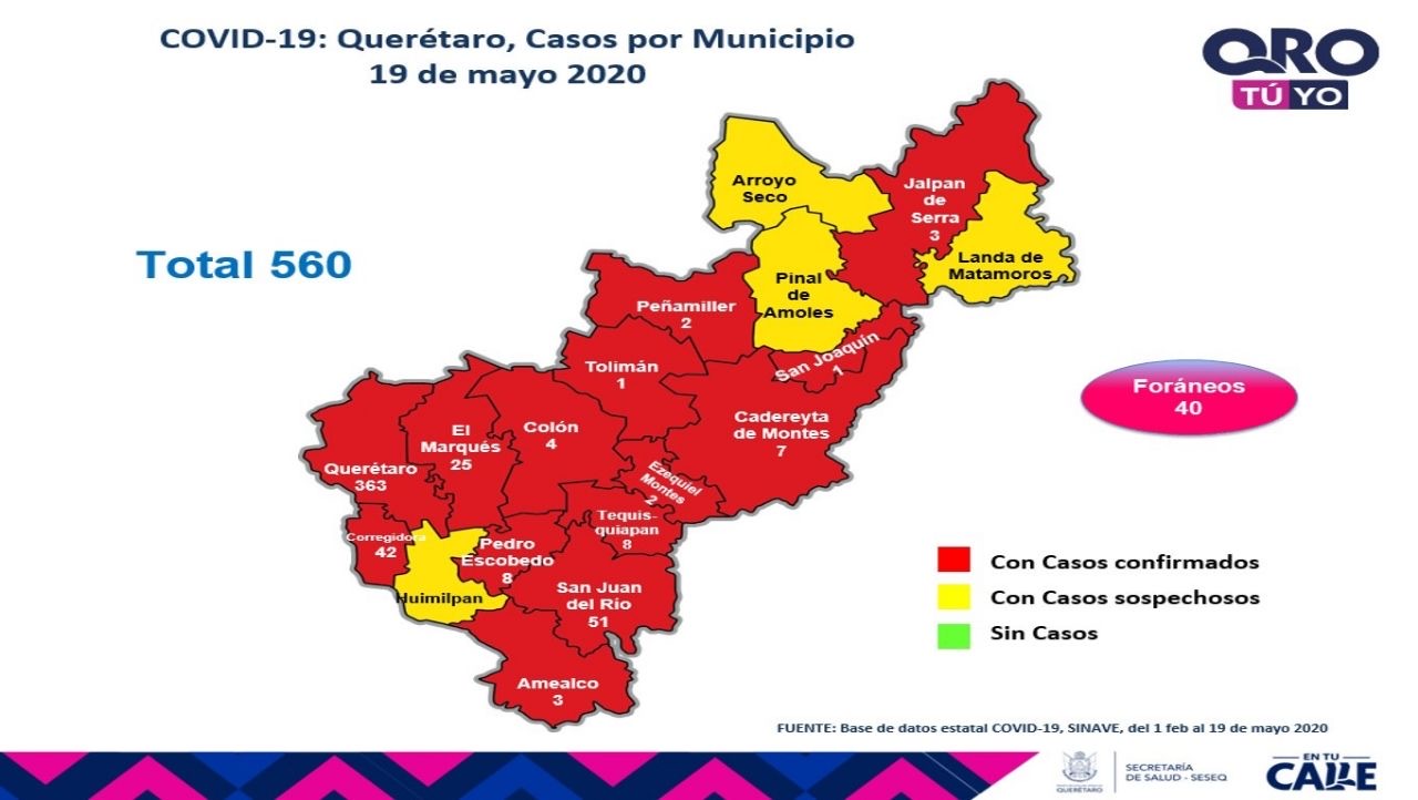 Se tiene un registro acumulado de 560 casos de COVID-19, 253 son mujeres (45%) y 307 hombres (55%).