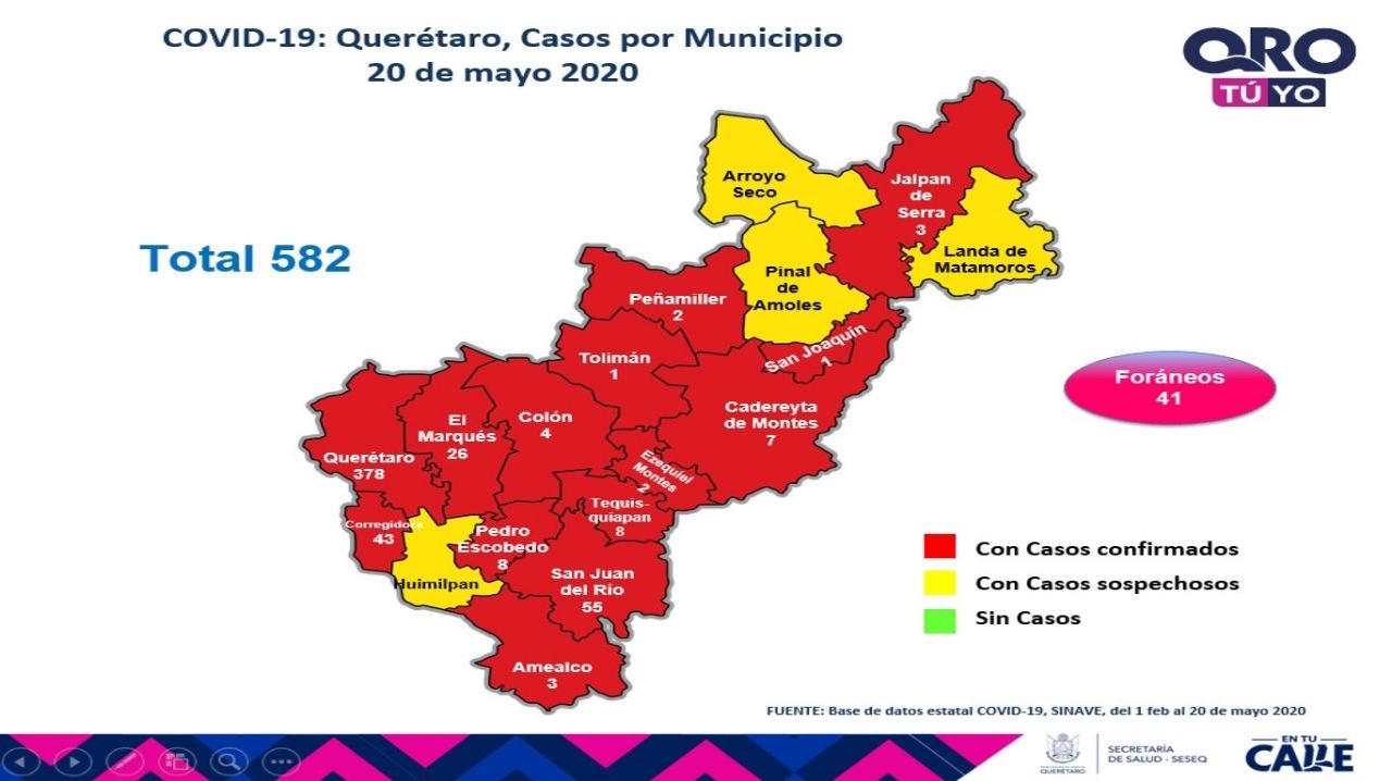 Se tiene un registro acumulado de 582 casos de COVID-19, 264 son mujeres (45%) y 318 hombres (55%).
