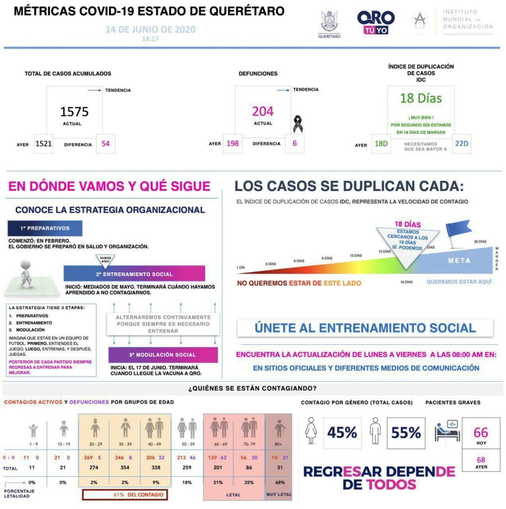 Para atender el tema de COVID-19 se habilitó el call center 442 1015205. A la fecha se han contestado 19 mil 181 llamadas con un promedio de duración de siete minutos 20 segundos.